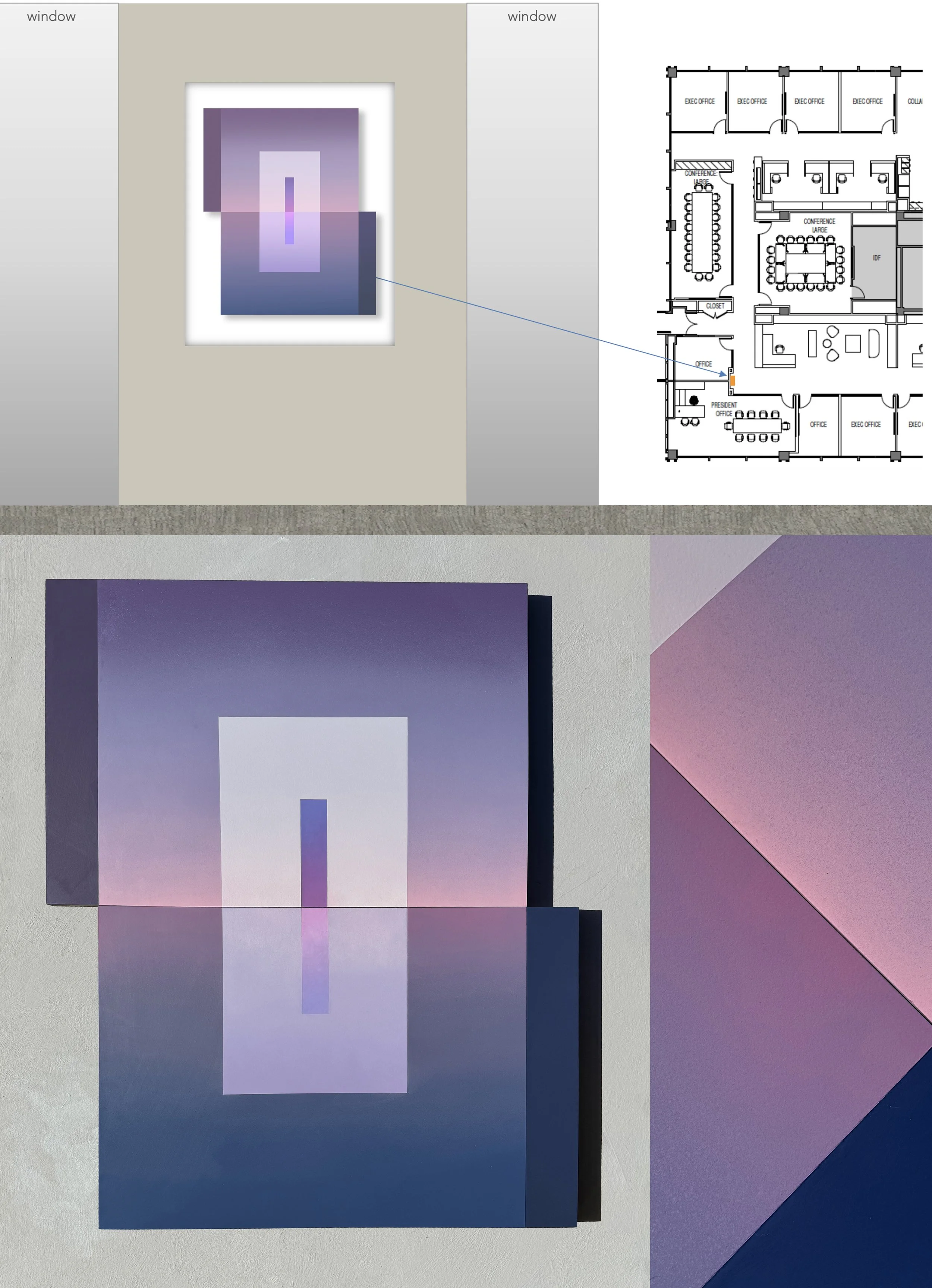 Working from a selection of my existing compositions, we can create a custom color palette to match any decor. We can also recreate an existing piece at a scale/ size or format that suits your space. See a 12” piece you want at 36” ? We can make it together. Through sharing photos, videos, or an in-person site-visit, we can pull from your existing decor to create a piece that makes your space sing.